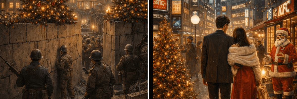El caso de estudio definitivo de una Navidad puramente secular es el Japón moderno. A pesar de que la población cristiana es minúscula, la mayoría de los japoneses celebran el Kurisumasu. Sin embargo, esta versión tiene poco que ver con la tradición occidental. En Japón, la Navidad es un festival de consumismo centrado en la juventud y el romance. La Nochebuena se ha convertido en la «noche de cita» más importante del año para las parejas jóvenes, un evento con connotaciones románticas e incluso eróticas. Los anuncios que usan lemas como «Noche de Paz» no evocan un himno religioso, sino que promocionan champán o chocolates de lujo para una velada íntima.