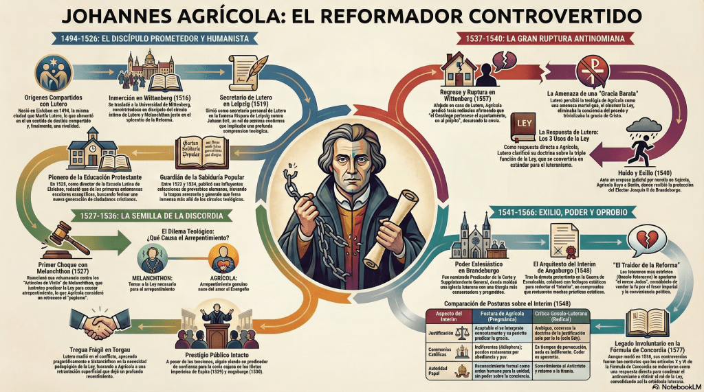Este artículo se propone rescatar a Agricola de la caricatura. A través de cinco giros inesperados en su vida, exploraremos las facetas de un hombre que fue mucho más que el enemigo más íntimo de Lutero: un catalizador indispensable, aunque trágico, en la forja de la identidad luterana.